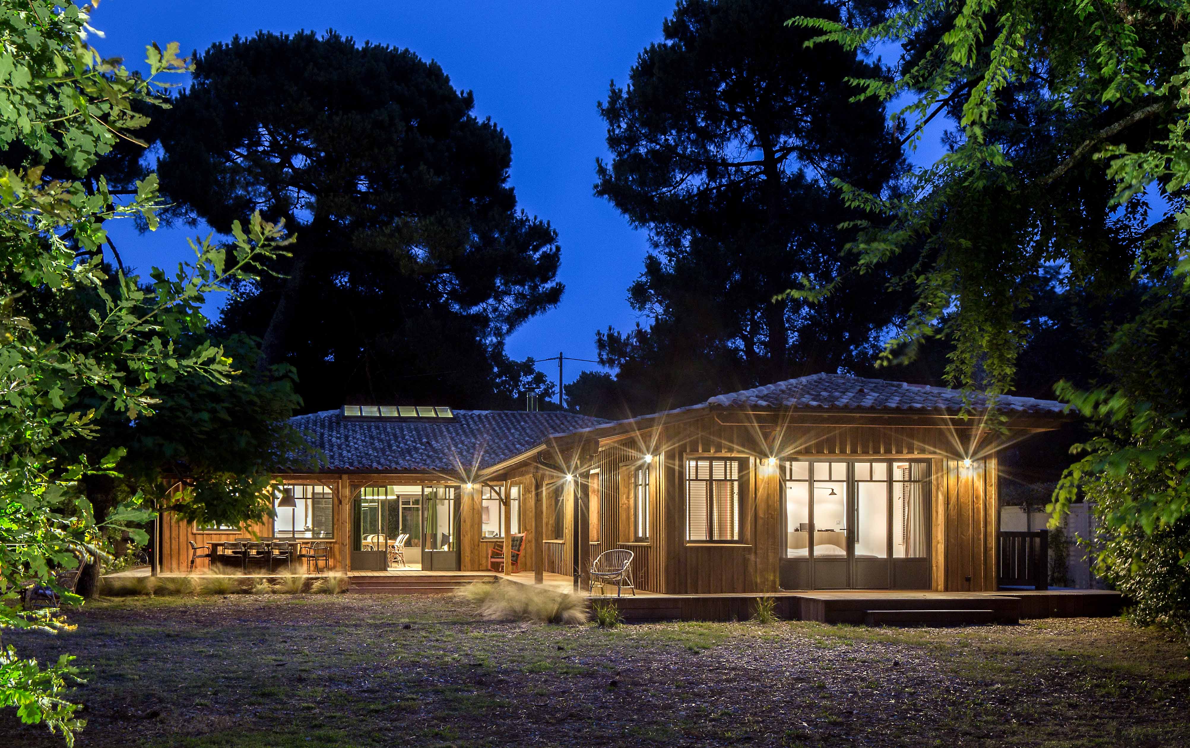 Le projet consistait à rénover une maison de type « Gaume » dans son état d’origine, en lui apportant une nouvelle esthétique à travers un bardage en Douglas à couvre-joint, s’inspirant des cabanes et maisons traditionnelles du Bassin d’Arcachon. Cette demeure renfermait sur ses murs des fresques réalisées par le peintre Foujita, ami de Picasso. Afin de préserver ces œuvres d’art, nous avons soigneusement découpé les murs pour les envoyer chez Drouot en vue de leur vente. Pour cette villa, notre atelier a pris en charge l’intégralité du projet, depuis la conception des plans jusqu’à la gestion des travaux et la livraison finale. Le projet a été pensé pour s’intégrer harmonieusement dans son environnement tout en répondant aux exigences de nos clients en termes de confort, d’esthétique, et de performance énergétique.